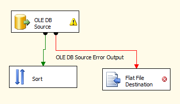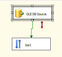 Por ejemplo en este caso mientras que la lectura de los datos en «Ole DB Source» sea correcta, se ejecutará la transformación Sort. En caso contrario el SSIS fallará y no realizará nada.