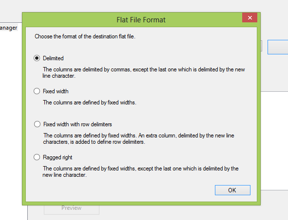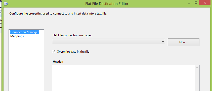 Ahora sólo nos falta especificar el formato del fichero de logs. Para hacemos doble clic sobre el componente «Flat File Destination».